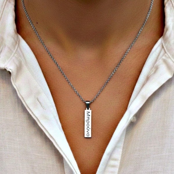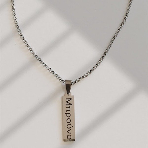 Dije y cadena de acero quirúrgico con grabado personalizado de un lado.
